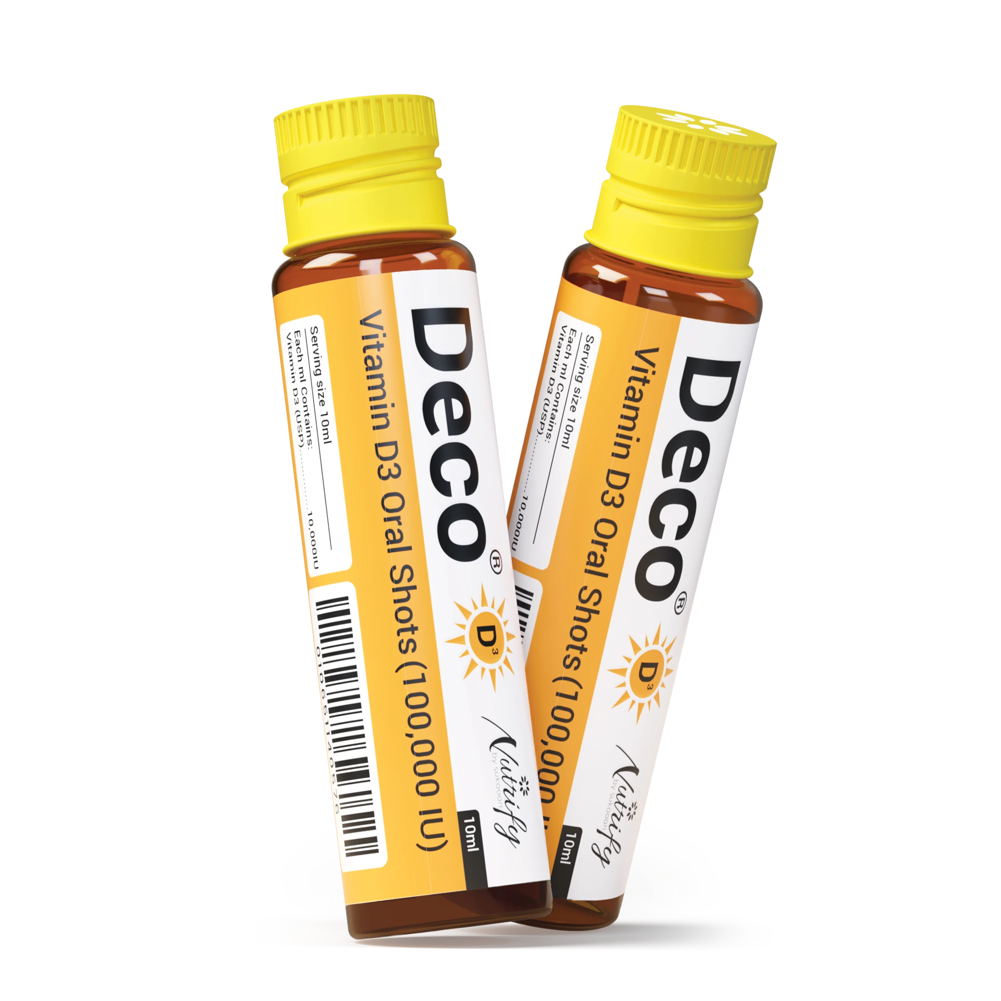 Deco® D3 offers a powerful dose of Vitamin D3 in an easy-to-consume oral shot, designed to support bone strength, immune function, and overall well-being. Each 10ml vial delivers 100,000 IU of Vitamin D3, making it ideal for individuals with deficiency or increased daily requirements.