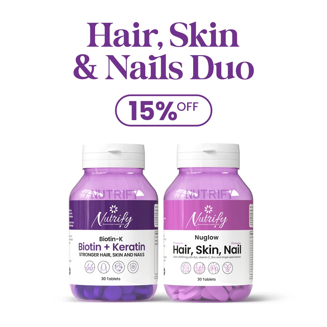 Support radiant skin, healthy hair, and stronger nails with this powerhouse duo. Enjoy 15% OFF when you bundle Nuglow + Biotin-K together.